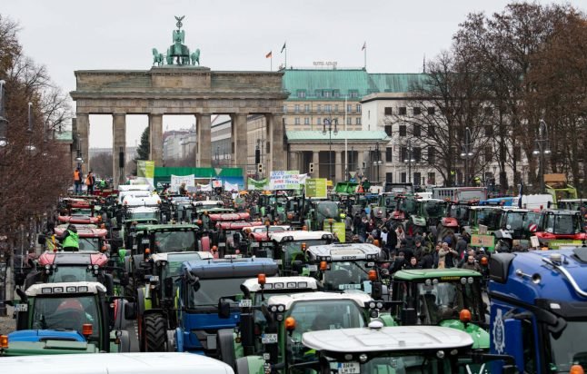 Huge disruption in Berlin as thousands of farmers in tractors shut down streets.